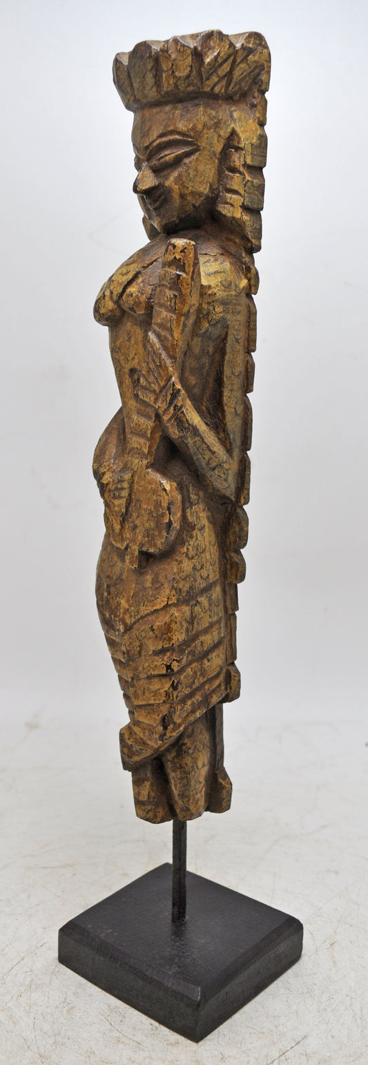 Antique Wooden Woman Lady Musician Figurine Original Old Fine Hand Carved