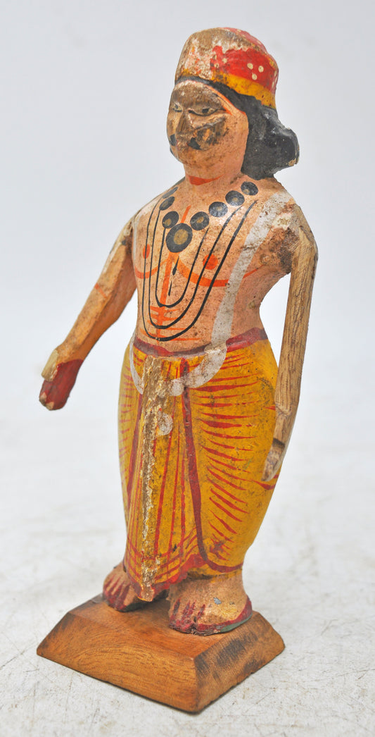 Vintage Wooden Ethnic Man Figurine Original Old Hand Carved Painted
