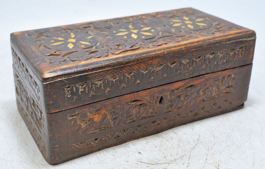 Vintage Wooden Small Fine Carved Jewelery Box Original Old Hand Crafted