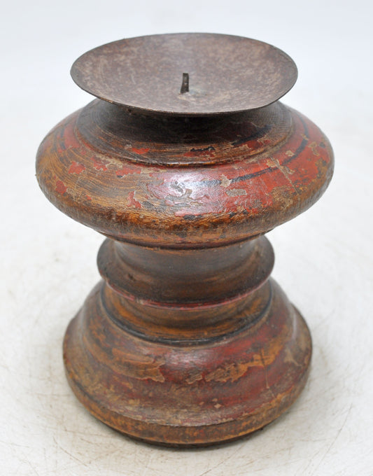 Antique Wooden Paga Candle Holder Stand Original Old Hand Carved Painted
