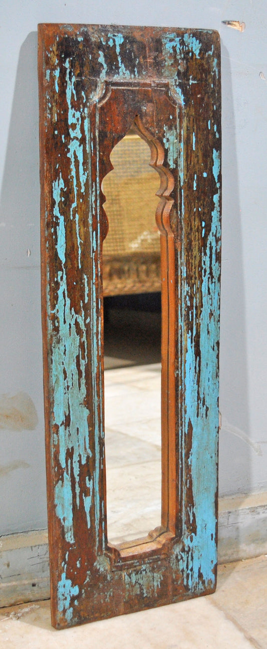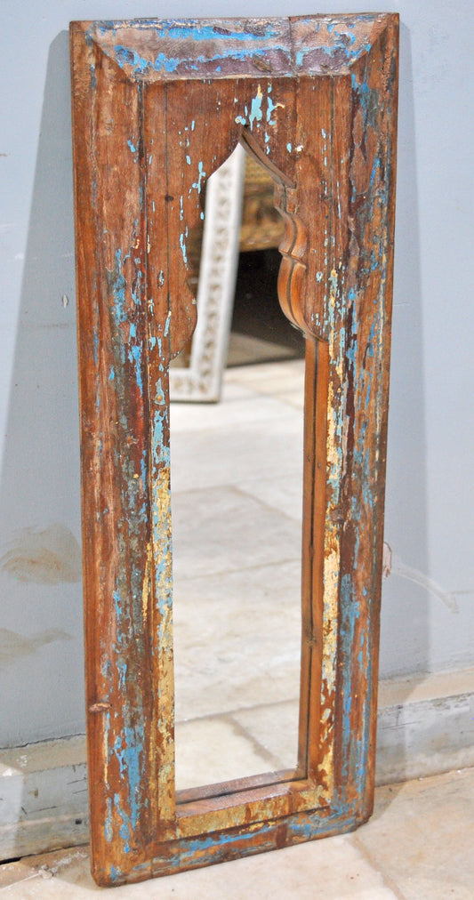 Salvage Reclaimed Wood Wall Décor Arch Shaped Mirror Frame Rustic Polychrome