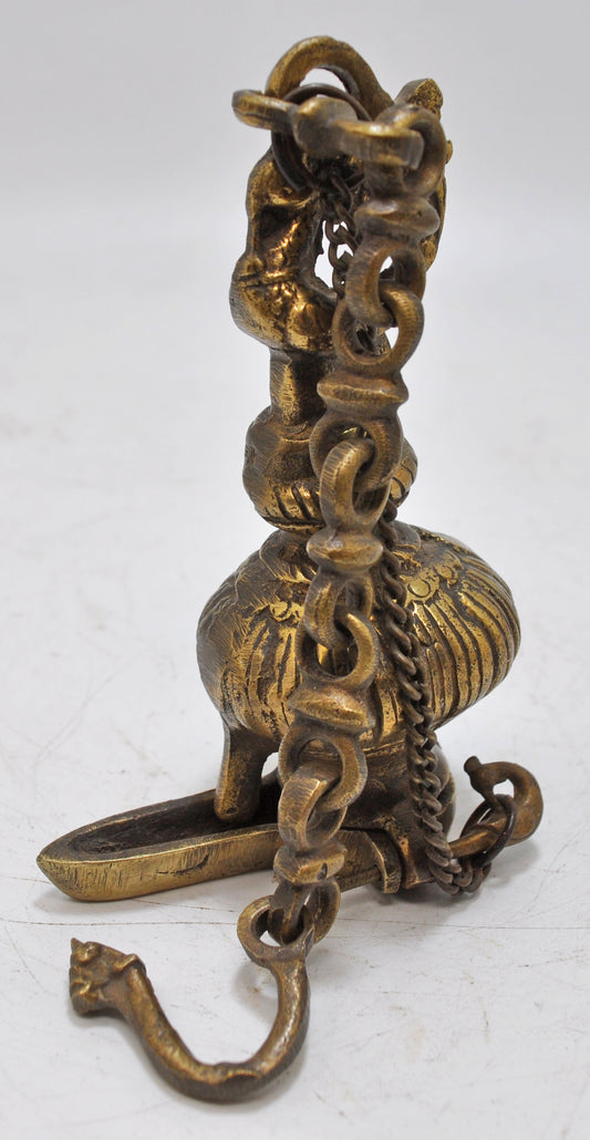 Antique Brass Hanging Diya Oil Light Lamp Original Old Hand Crafted Engraved