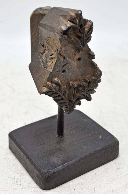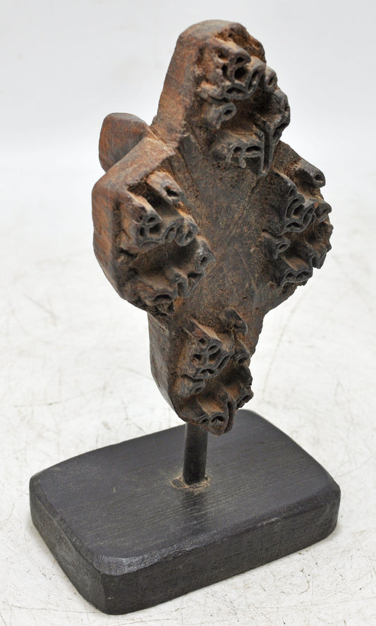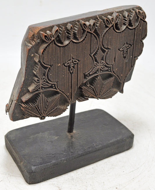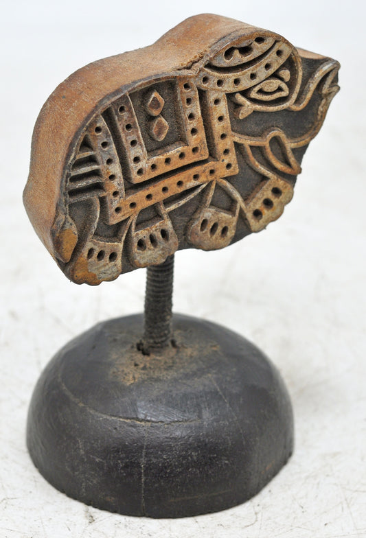 Antique Wooden Textile Printing Block on Stand Original Old Hand Carved