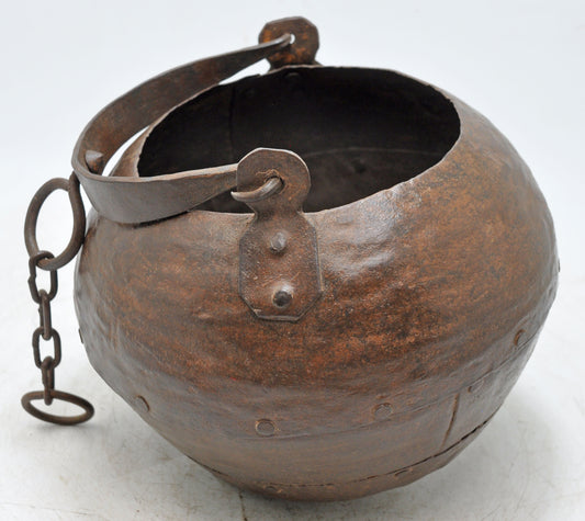 Antique Iron Well Water Bucket With Handle Original Old Hand Crafted