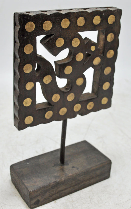 Vintage Wooden Decorative Om Panel Plaque on Stand Original Old Hand Carved