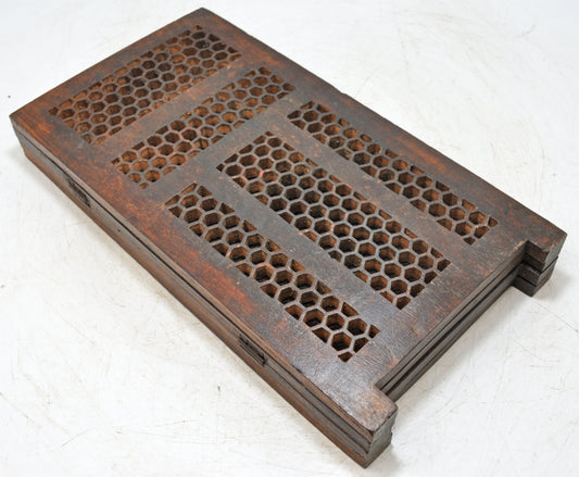 Vintage Wooden Short Desk Screen Original Old Fine Hand Carved Jali Design