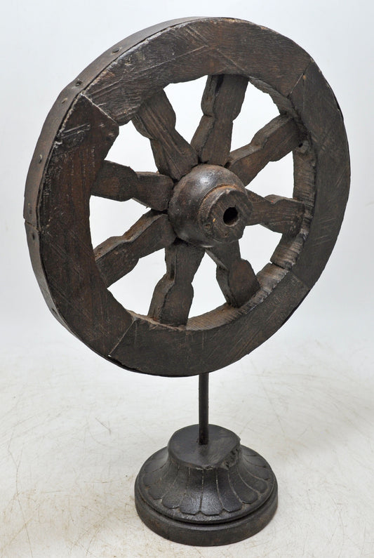 Vintage Wooden Decorative Round Wheel on Stand Original Old Hand Crafted