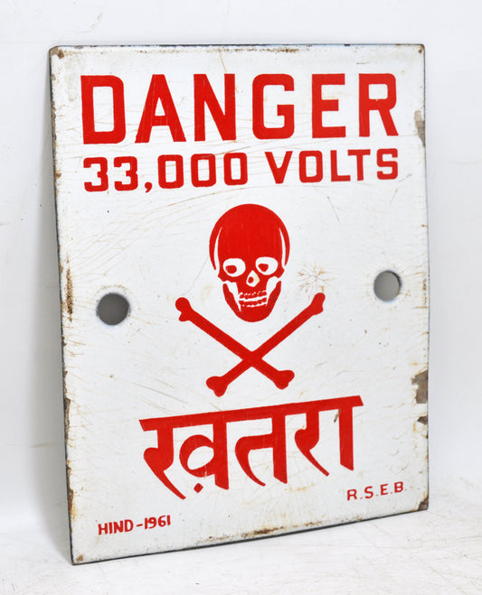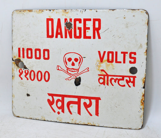 Antique Iron Enamel Porcelain Danger Sign Board Original Old Hand Crafted