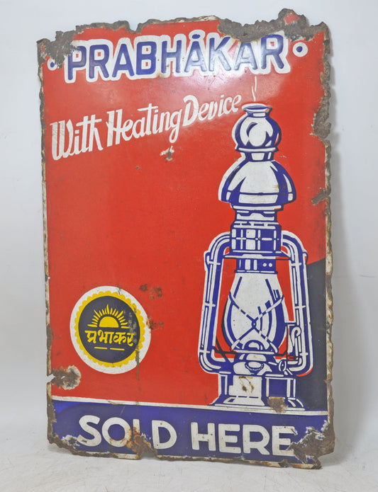 Antique Iron Enamel Porcelain Ad Sign Prabhakar Lanterns Original Old Glossy Colors