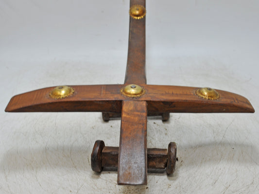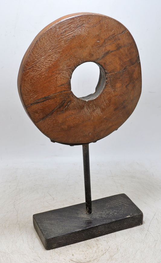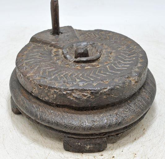 Antique Wooden Round Ring on Stand Original Old Hand Carved