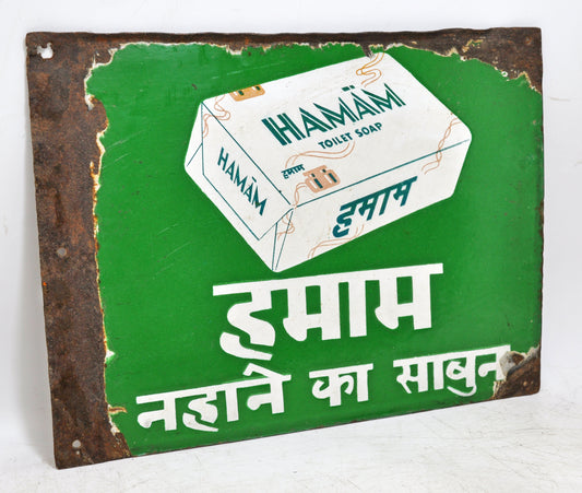 Antique Iron Enamel Porcelain Hamam Soap Ad Sign Board Original Old Glossy Colors