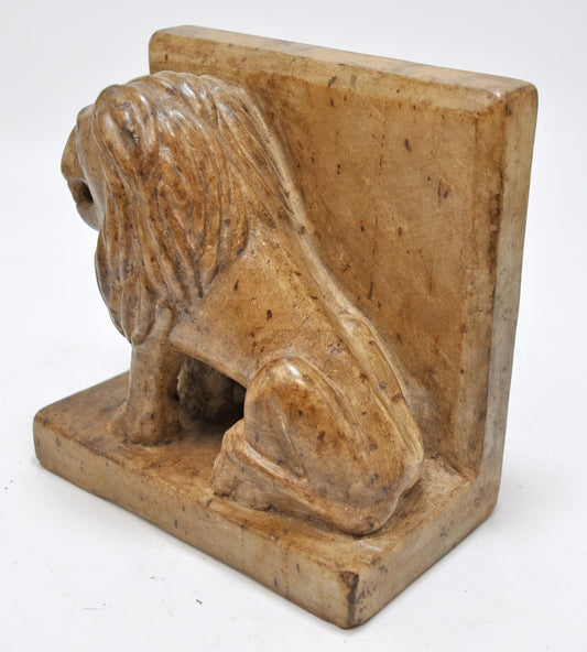 Vintage White Marble Lion Figurine Book End Original Old Fine Hand Carved