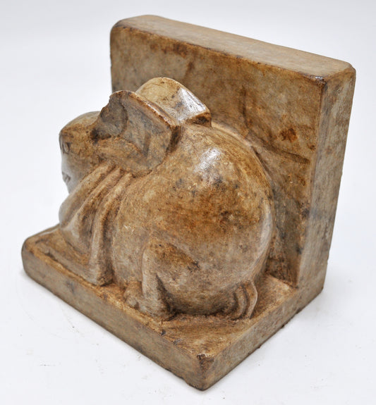 Vintage White Marble Rabbit Figurine Book End Original Old Fine Hand Carved