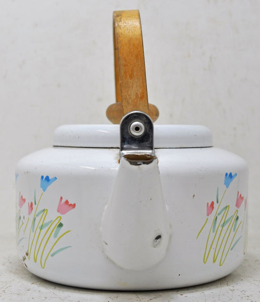 Vintage Enamel Porcelain Iron Metal Tea Kettle Pot Original Old Hand Crafted