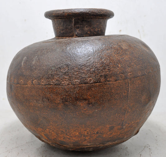 Antique Iron Round Kitchenware Water Matka Pot Original Old Hand Crafted