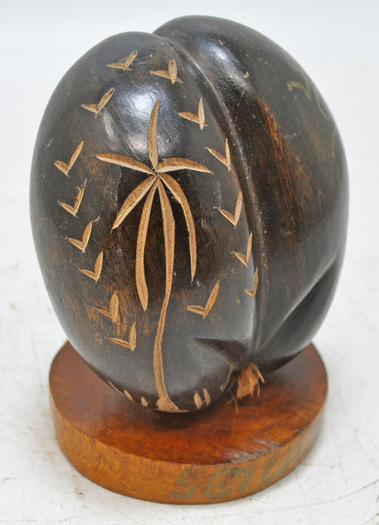 Vintage Wooden Decorative Seychelles Coconut Figurine Original Old Hand Carved