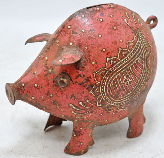 Vintage Iron Small Pig Shaped Piggy Bank Coin Box Original Old Hand Crafted