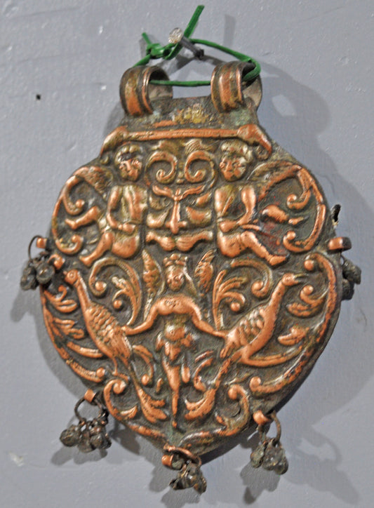 Antique Copper Victorian Design Pendant Original Old Hand Crafted Fine Embossed