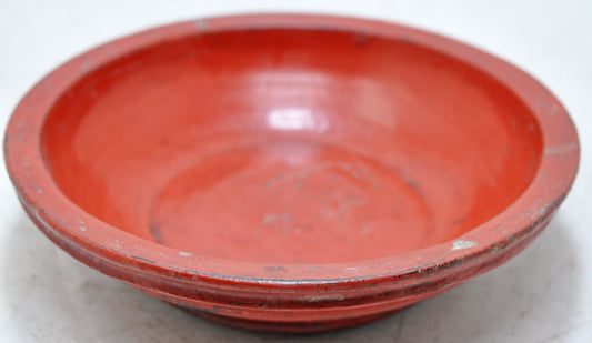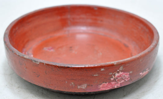 Antique Wooden Round Kitchenware Plate Original Old Hand Carved Lacquer Painted
