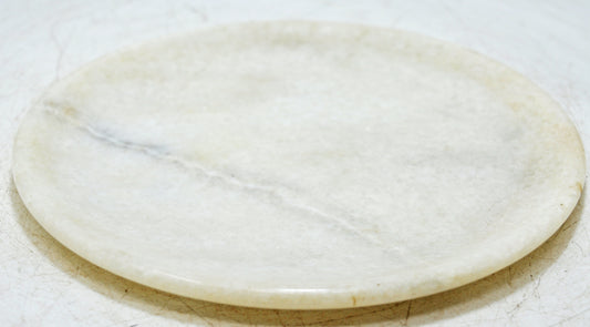 Antique White Marble Chapati Bread Rolling Plate Original Old Hand Carved