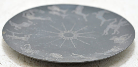 Vintage Iron Zodiac Signs Decorative Round Plate Original Old Silver Leaf Painted