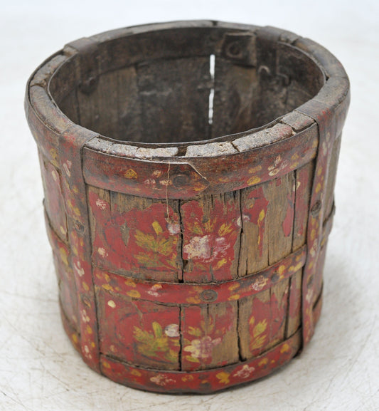Vintage Wooden Small Grain Measurement Paili Pot Original Old Hand Crafted Painted