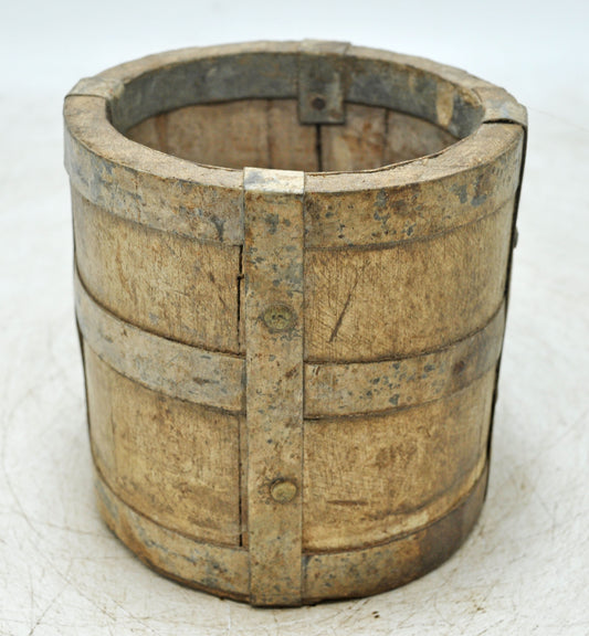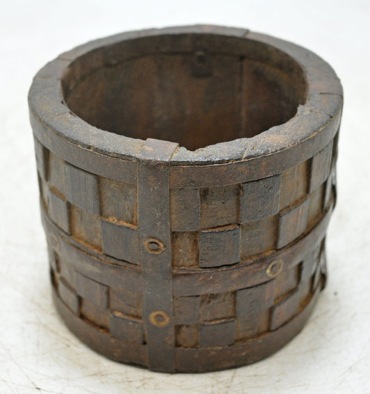 Vintage Wooden Small Planter Pot Original Old Hand Crafted Metal Fitted