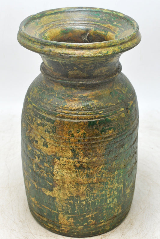 Antique Wooden Himalayan Water Matka Pot Original Old Hand Carved