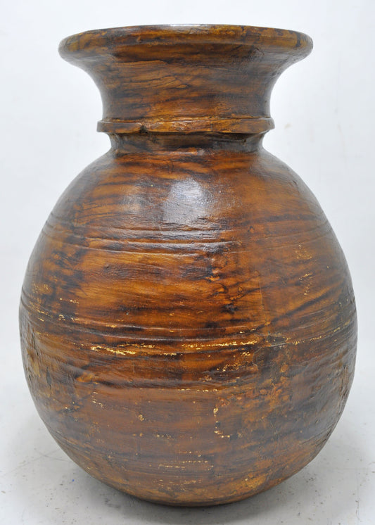 Antique Wooden Himalayan Water Matka Pot Original Old Hand Crafted