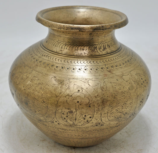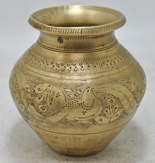 Antique Brass Round Water Drinking Lota Pot Original Old Hand Crafted Engraved