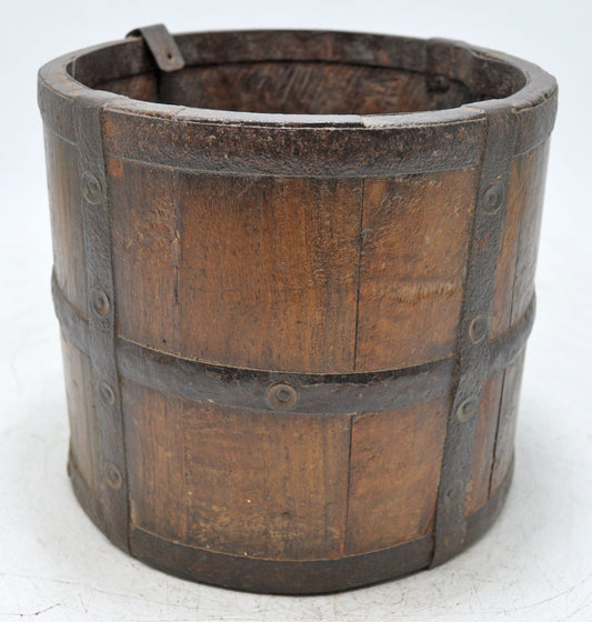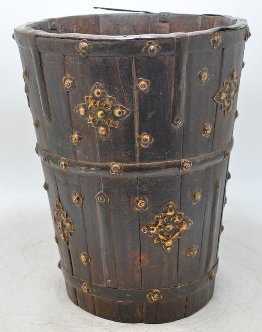 Antique Wooden Water Pot Matka Original Old Hand Crafted Metal Fitted