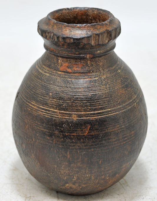 Antique Wooden Small Round Water Drinking Pot Original Old Hand Carved