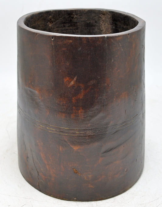 Antique Wooden Kitchenware Round Grain Measurement Pot Original Old Hand Carved