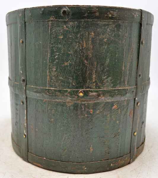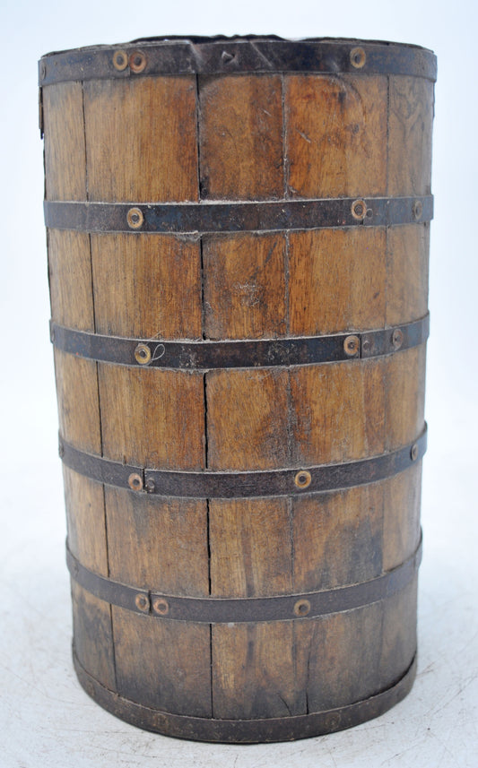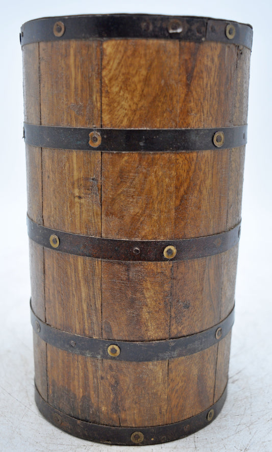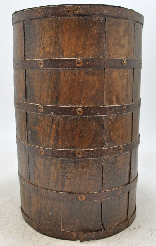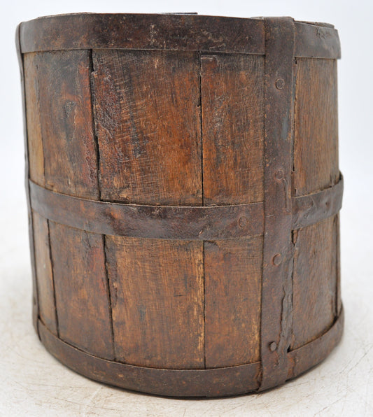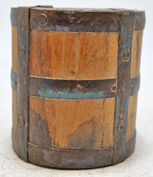 Vintage Wooden Grain Measurement Pot Original Old Hand Crafted Metal Fitted