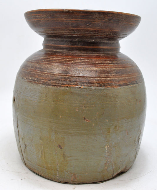 Antique Wooden Himalayan Water Storage Matka Pot Original Old Hand Carved