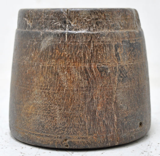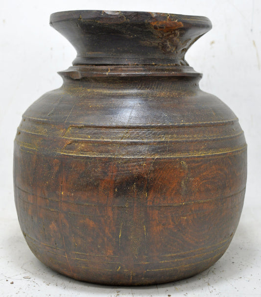 Antique Wooden Round Small Pot Original Old Hand Crafted