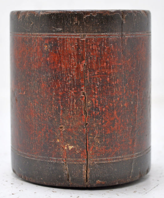 Vintage Wooden Round Grain Measurement Pot Mana Original Old Hand Painted