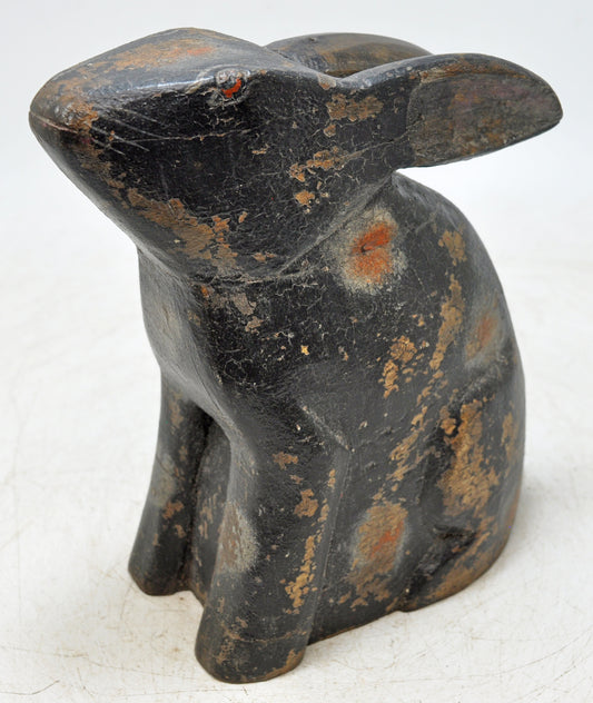 Vintage Wooden Rabbit Figurine Original Old Hand Carved