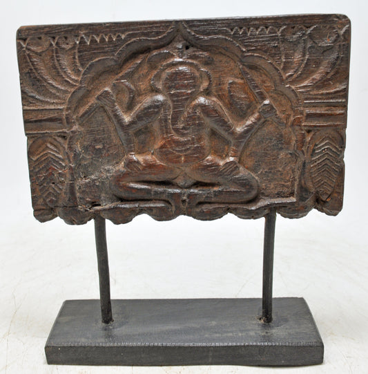 Antique Wooden God Ganesha Idol Panel Plaque Original Old Fine Hand Carved