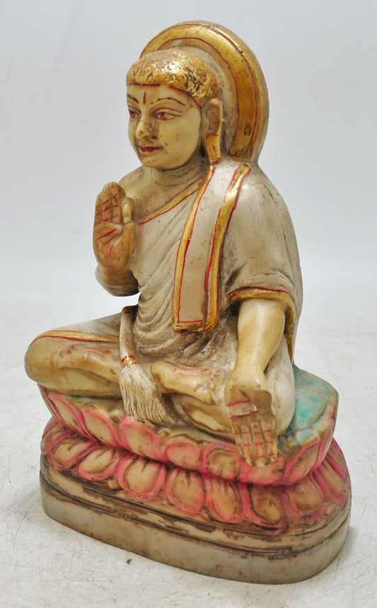 Vintage White Marble Jainism Gautama Swami Idol Figurine Original Old Fine Hand Carved