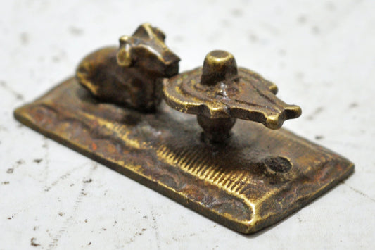 Antique Brass God Shiva Linga and Nandi Idol Figurine Original Old Fine Engraved