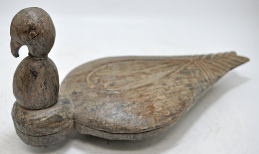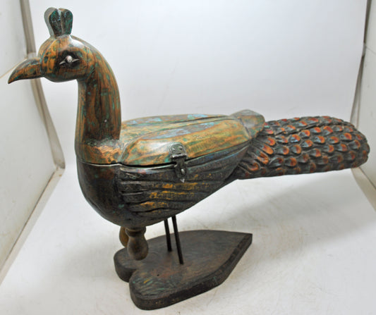 Antique Wooden Large Peacock Figurine Spice Box Original Old Very Fine Hand Carved