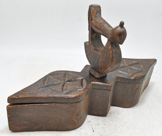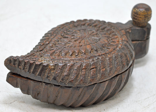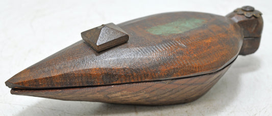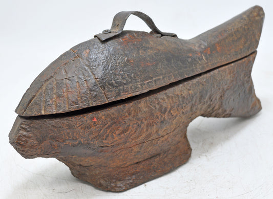 Antique Wooden Fish Shaped Spice Box Original Old Fine Hand Carved