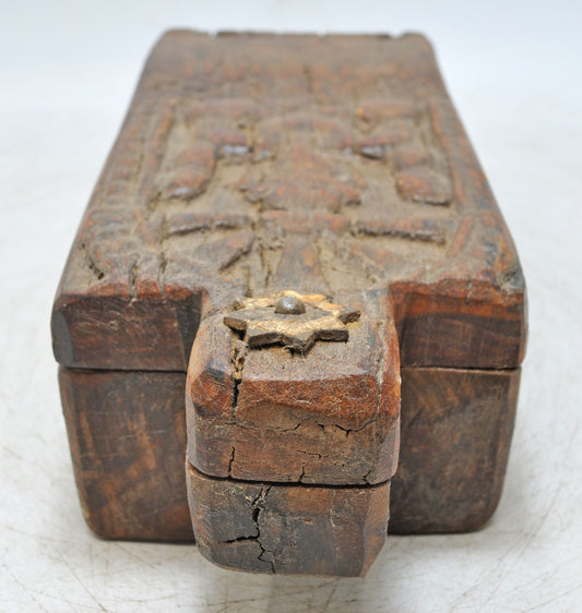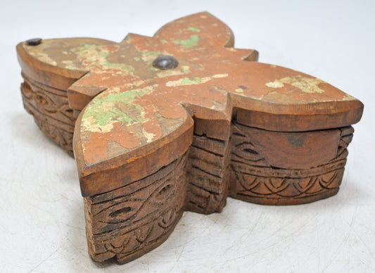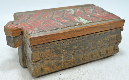 Antique Wooden Large Size Spice Box Original Old Hand Carved