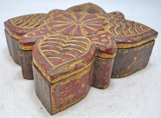 Antique Wooden Kitchenware Spice Box Original Old Hand Carved