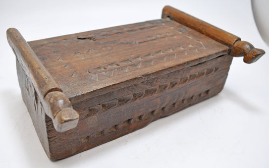 Antique Wooden Kitchenware Spice Box Original Old Hand Carved Large Heavy
