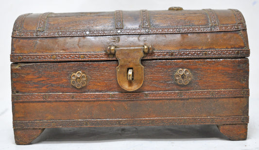 Vintage Wooden Half Round Jewellery Storage Box Original Old Hand Crafted Brass Fitted