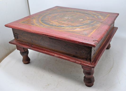 Antique Wooden Floor Sitting Bajot Stool Original Old Hand Crafted Painted