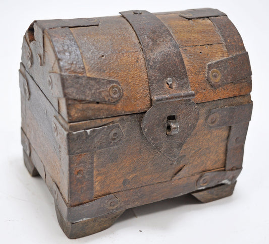 Vintage Wooden Half Round Top Small Storage Box Original Old Hand Crafted Brass Fitted