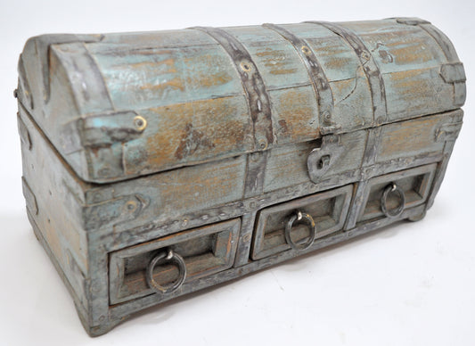 Vintage Wooden Small Storage Jewellery Box Original Old Hand Crafted Painted